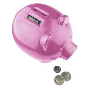 Product Description : A charming way to inspire kids to save, while teaching kids about money! This classic-look kids' piggy bank is equipped with an electronic coin counter, so kids can see their savings add up. And they can add along with the digital display, reinforcing math and money skills. Electronic piggy bank looks ceramic, but it's unbreakable plastic. Good value, too! Requires 2 "AA" batteries (sold separately). For ages 4 and up. Electronic piggy bank features a digital coin counter that adds all types of change Bottom plug makes money accessible Plastic piggy bank measures 4 1/4"L x 6"W x 5"H